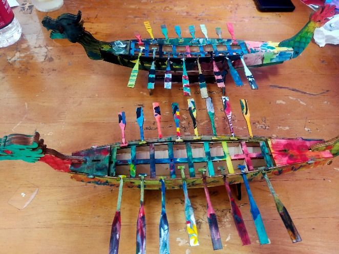 大龙舟由校内两名热心员工组装,小龙舟则由青菱社区的志愿者和小朋友合作拼装而成。拼装过程中,员工和小朋友集思广益、积极实践,将每个龙舟都拼得各有特色。龙舟着色则是由校内外的参与者接力完成,参与人数总计一百余人,员工覆盖全校各个公司。一百余次接力寓意传统文化的传承、微尘志愿服务的延续,反映了互助、进步的志愿者精神。