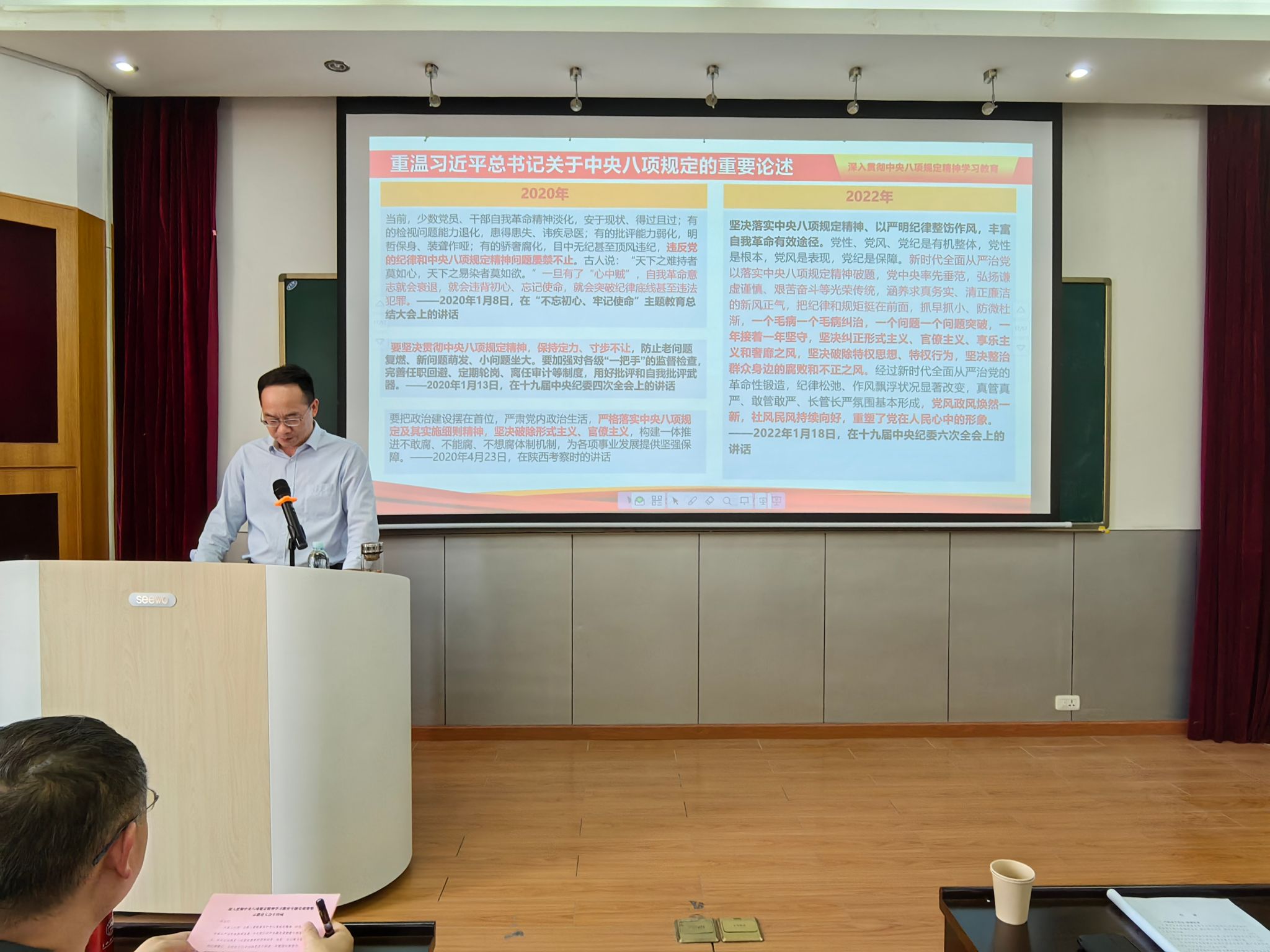 为深入贯彻中央八项规定精神学习教育,纵深推进全面从严治党,理公司于5月23日下午在22515学术报告厅召开深入贯彻中央八项规定精神学习教育专题党课暨警示教育大会,公司领导班子成员、系部主任、副主任、各党支部书记、支委会成员及党员代表参加,公司党委书记王文涛出席会议并讲话,公司经理丁义明主持会议。