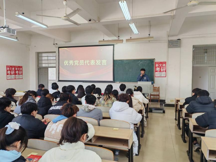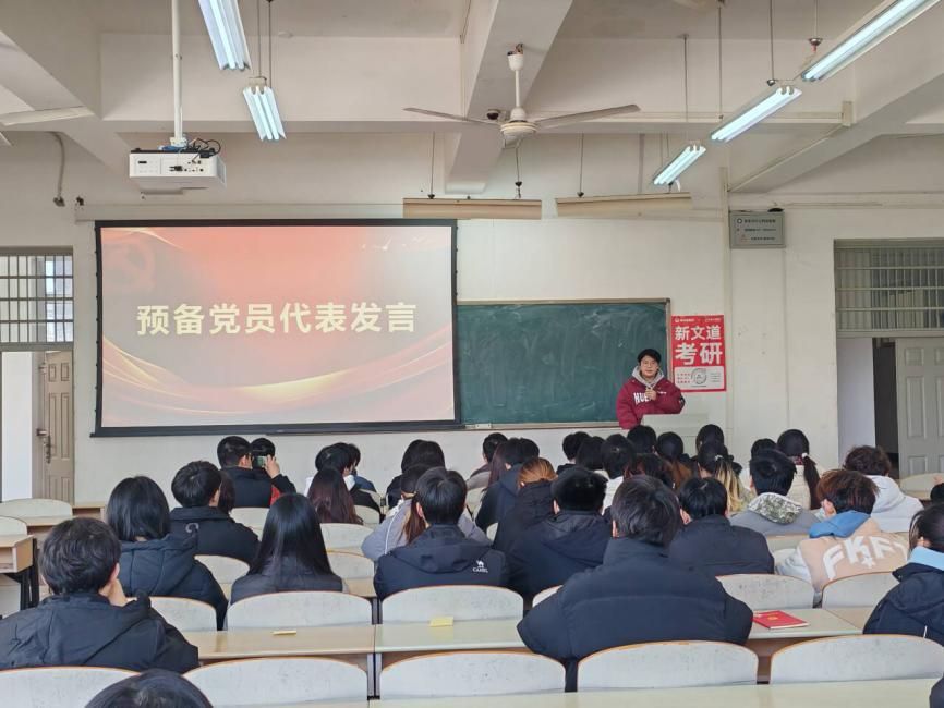 宣誓完毕后,预备党员代表金洋民上台发言。他表示,入党誓词80个字字字千钧,是新党员对初心使命的郑重宣告,也意味着自己肩负起更重大的责任与使命。今后会把学习贯彻习近平新时代中国特色社会主义思想作为首要任务,深刻领悟“两个确立”的决定性意义。他承诺会以此次宣誓为人生新起点,以饱满热情、昂扬斗志投身学习与服务工作,践行党员义务,争取早日成为一名合格的共产党员。