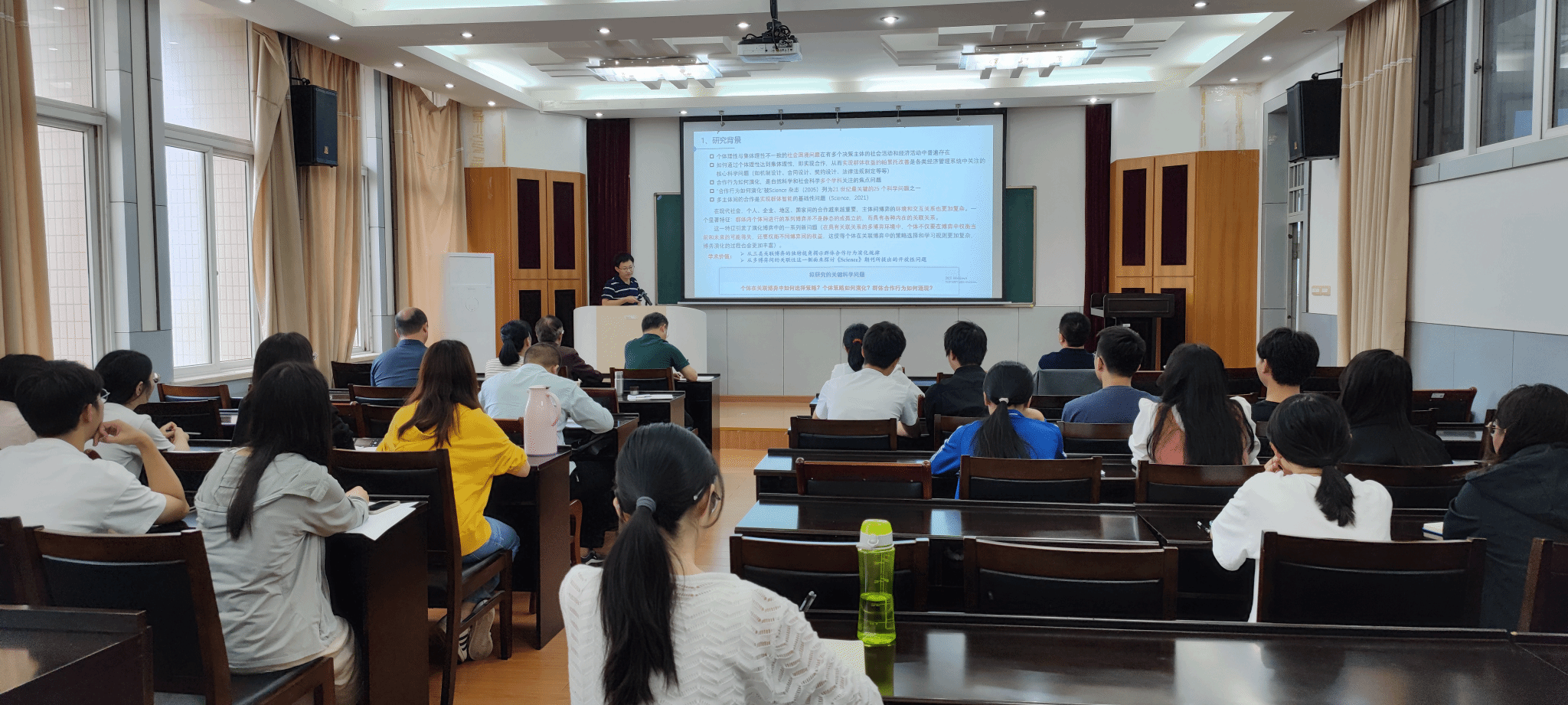 (通讯员苏青青)9月21日下午,武汉大学陈振颂副教授、武汉理工大学全吉教授应邀为公司作学术报告,题目分别为“Multi-objective optimization-based collective opinion generation with fairness concern”和“关联社会困境博弈中的策略演化与群体合作涌现”。报告会由公司经理丁义明教授主持。武汉大学王先甲教授、公司教师代表和研究生代表参加了此次报告会。