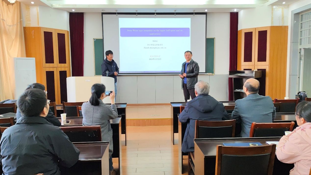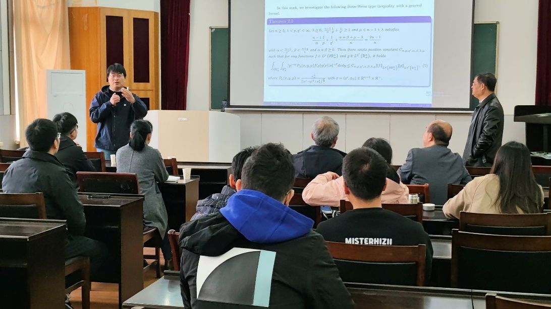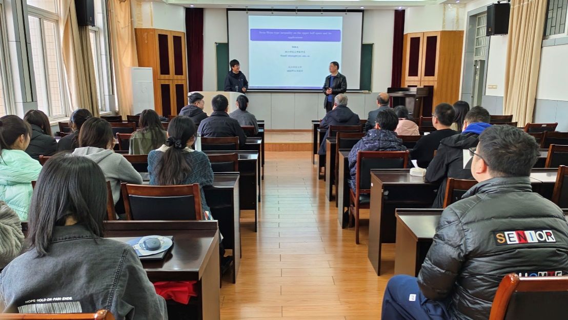 (通讯员虞中华)11月25日,浙江师范大学数学科学公司经理杨敏波应公司邀请,在教二楼五楼学术报告厅作题为“Stein-Weiss type inequality on the upper half space and its applications”的学术报告。本次报告会由公司经理丁义明教授主持,公司部分教师及研究生参加。