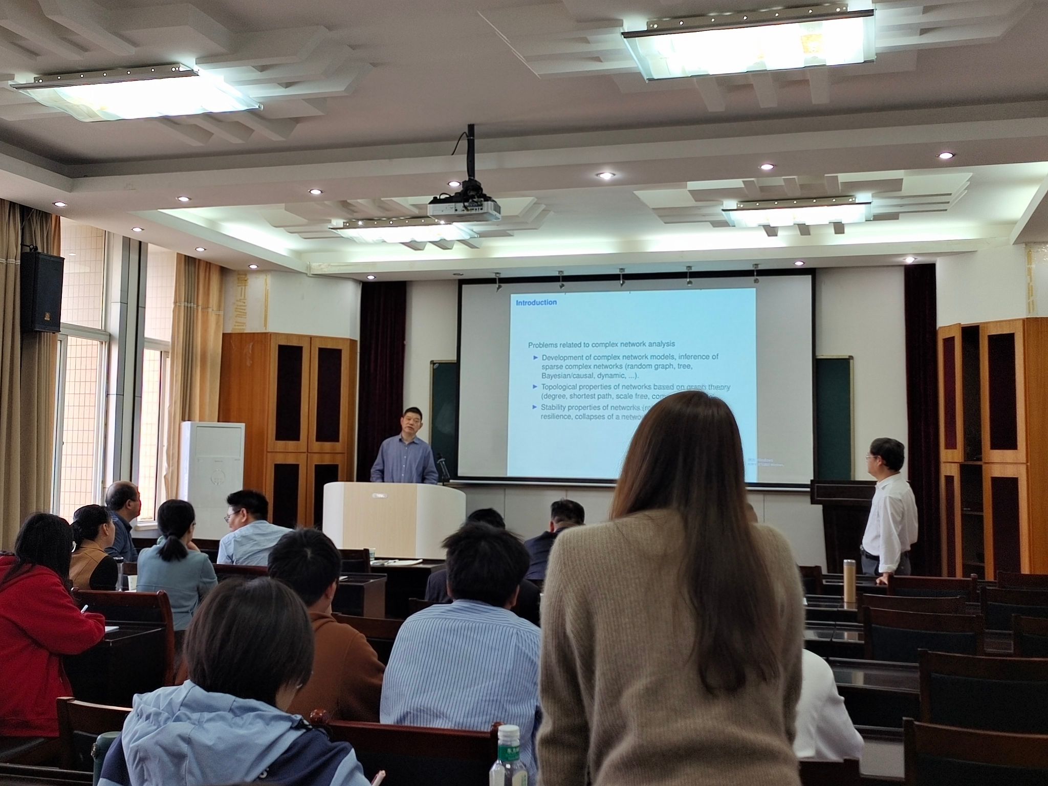 丁义明经理向在座师生介绍了田天海教授的成就,并代表全体师生对于他的到来表示热烈欢迎。丁经理表示:田教授的报告将深入探讨大规模调控网络在正负调控影响下的弹性问题。这对于我们理解和设计能够在波动环境中保持稳定性的复杂系统具有重要意义。
