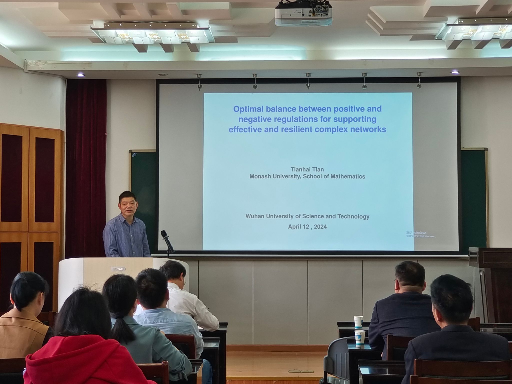 (通讯员苏青青)4月12日,澳大利亚莫那什大学田天海教授应公司邀请在理公司报告厅作学术报告,题目为“Resilience of large-scale interacting networks with positive and negative regulations”。本次报告会由公司经理丁义明教授主持,理公司教师及员工代表参加了此次报告会。