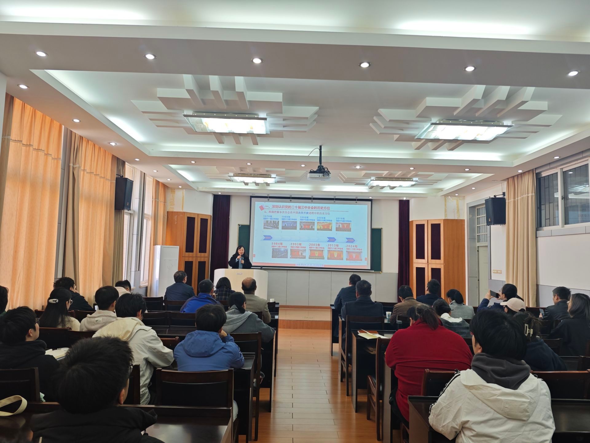 开班仪式上,公司宣讲团成员、马克思主义公司向艳教授以《绘就改革宏图,再启时代新篇——学习贯彻党的二十届三中全会精神》为题,从历史方位、主要内容、重大举措、贯彻落实四个方面,全面解读了党的二十届三中全会精神。