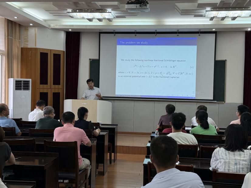 学术报告互动环节,两位教授与在场师生进行了深入的交流和讨论,耐心解答了师生们提出的问题,并向大家简要介绍了非线性偏微分方程领域的最新进展。青年教师李奇表示“报告中对‘非线性项最优指数’的探讨,为我的研究方向打开了新思路,尤其是不同衰减位势条件下的结论具有潜在的跨学科应用价值。”