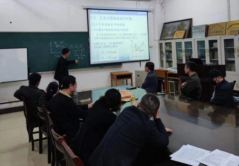 本次活动中,青年教师徐旺进行了《汇交力系的合成与平衡》的课程试讲。流畅飘逸的板书,精心准备的课件,配合生动有趣的讲述,徐旺把坐标系演绎成“力”栖身的世界,通过案例、比喻,让存在理解门槛的理论知识变得生动形象,易于理解。
