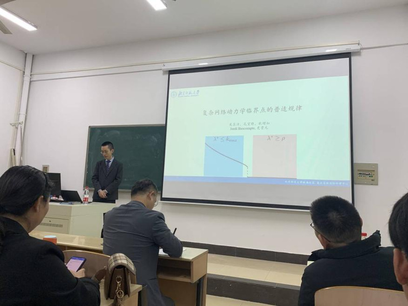 3月28日下午,北京师范大学复杂系统国际研究中心副研究员史贵元应邀为理公司作学术报告,其题目名为“复杂网络动力学临界点的普适规律”。报告会由公司经理丁义明主持。公司教师代表和研究生代表参加了此次报告会。