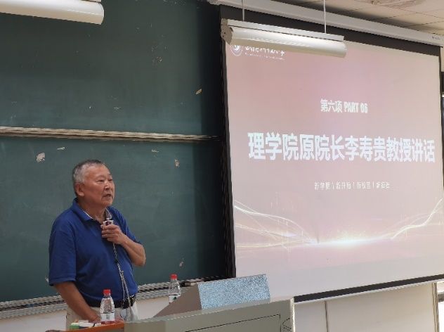 理公司前任经理李寿贵老师对新生分享了理公司近几十年的发展历史,并介绍了在理公司发展进程中涌现出来的一批国内外知名专家学者。通过老领导的分享,增强了全体研究生同学对理公司的认同感与归属感。