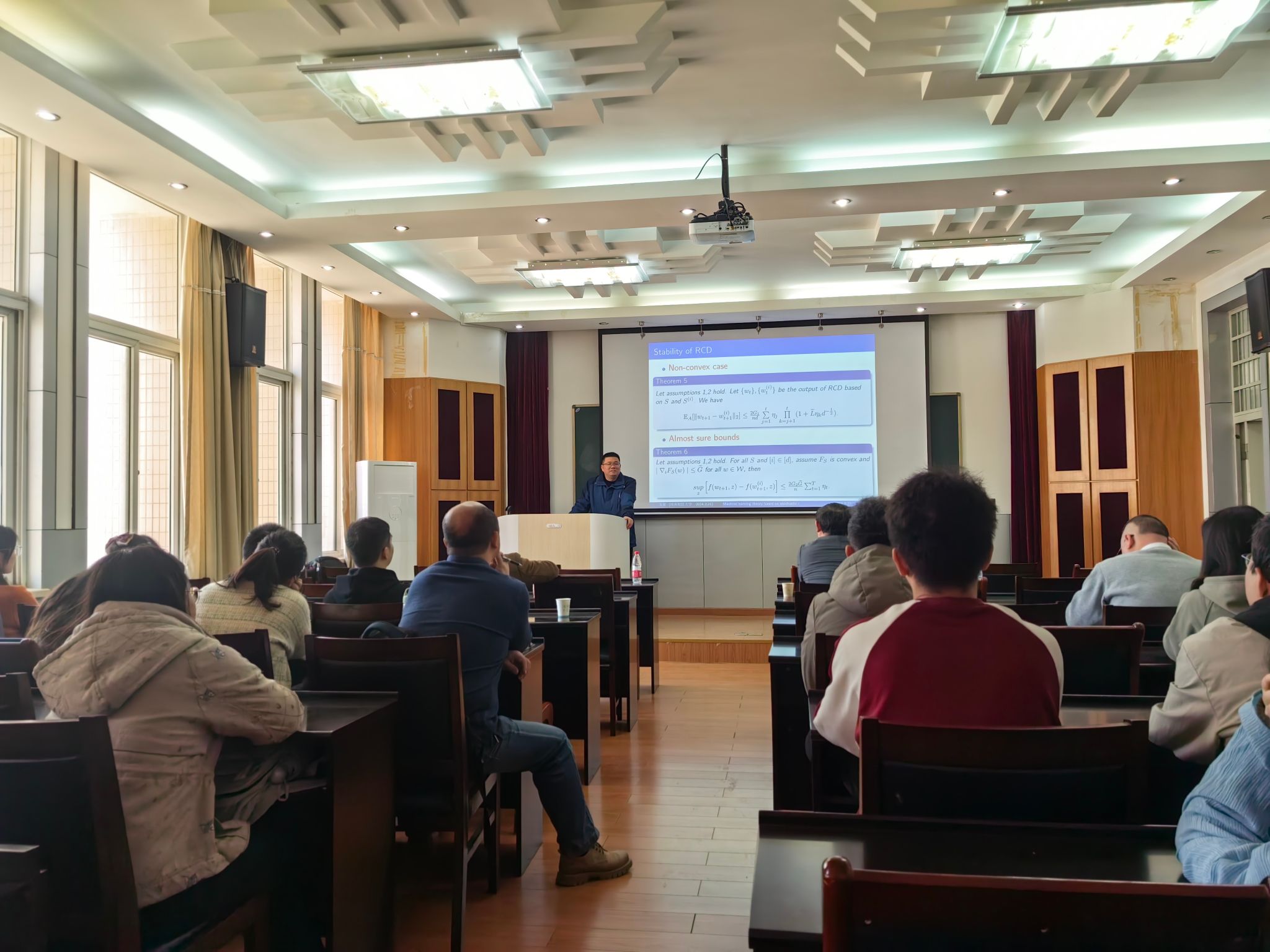 (通讯员理公司)3月21日,西南财经大学吴量副教授受公司邀请,在公司22515进行学术交流,作了题为《Machine learning theory based on stochastic optimization》(基于随机优化的机器学习理论)的专题报告,公司部分教师与研究生参加了此次报告会。