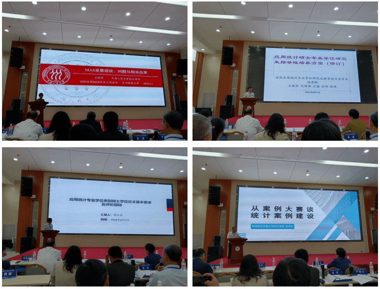 大会报告分别由教指委副主任委员、中国人民大学赵彦云教授和教指委副主任委员、西南财经大学史代敏教授主持。教指委委员兼秘书长、中国人民大学王晓军教授,教指委委员兼培养组组长、北京大学艾明要教授,教指委委员兼质量组长、南开大学邹长亮教授,教指委委员兼案例组组长、首都经济贸易大学张宝学教授分别做了题为“应用统计专业学位发展现状与相关改革”、“应用统计硕士专业学位研究生指导性培养方案解读”、“应用统计专业硕士学位论文基本要求及评价指标”、“应用统计专业学位案例建设的探究”的精彩报告。