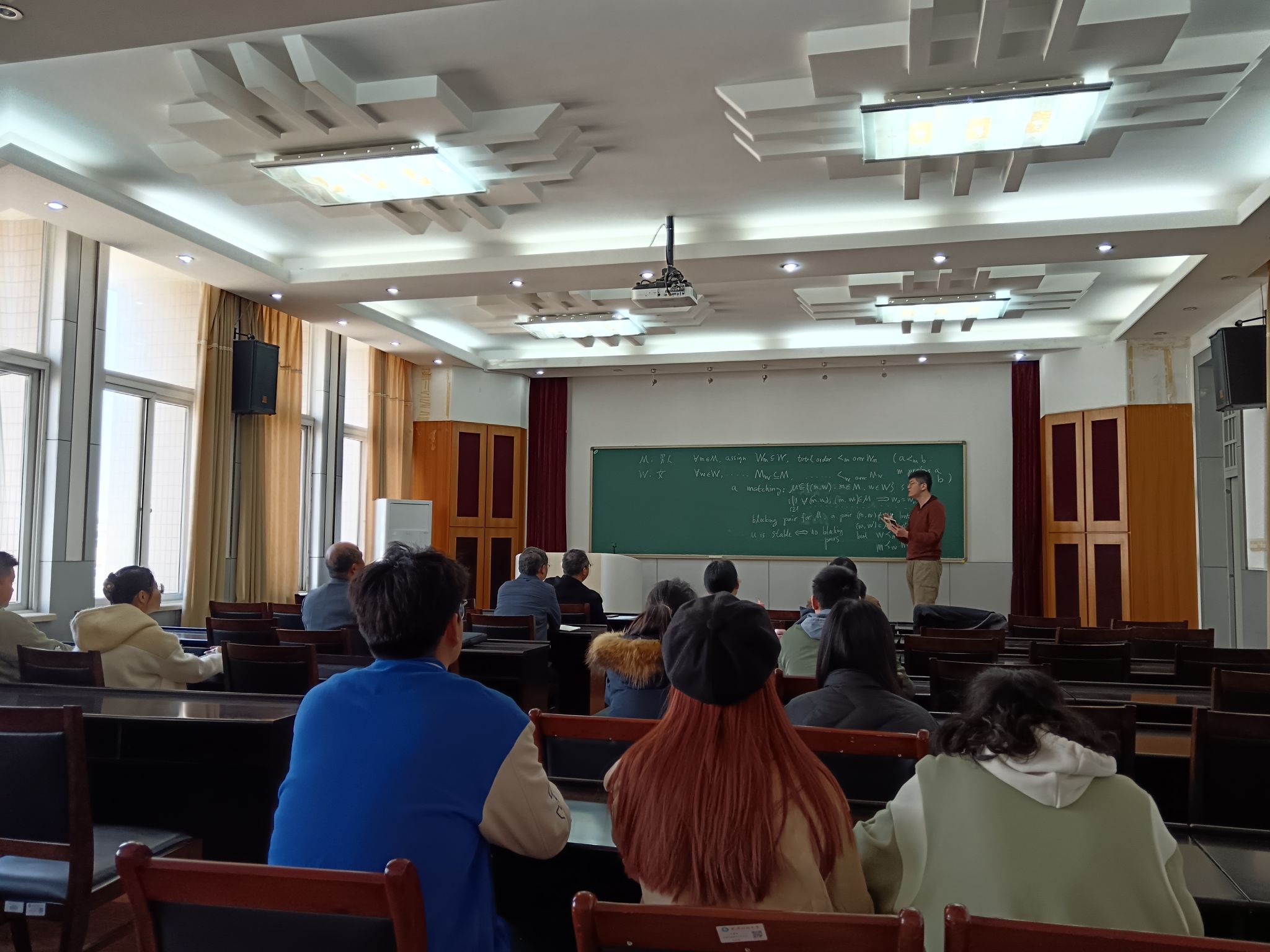 肖博士在报告中深入浅出地阐述了其与合作者在无穷多参与者的稳定匹配模型中的孤狼定理的新进展。他首先对问题的背景进行了全面而细致的讲解,随后详细叙述了在无穷多参与者情形下的一种弱形式的孤狼定理,并给出了严谨的证明过程,让在场师生对这一前沿研究成果有了清晰的认识。