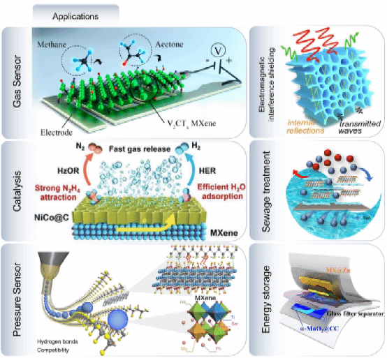 图 3. MXene在各个领域的应用摘要。