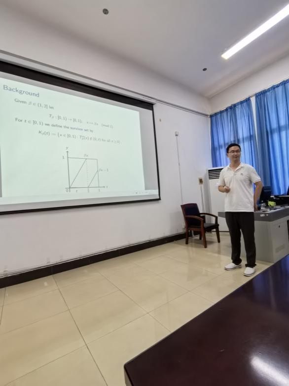 2024年8月13日下午,公司邀请了重庆大学数学与统计公司孔德荣教授作学术报告,题目为“Beta-transformation with a hole at 0: critical hole, transitivity and bifurcation sets”.